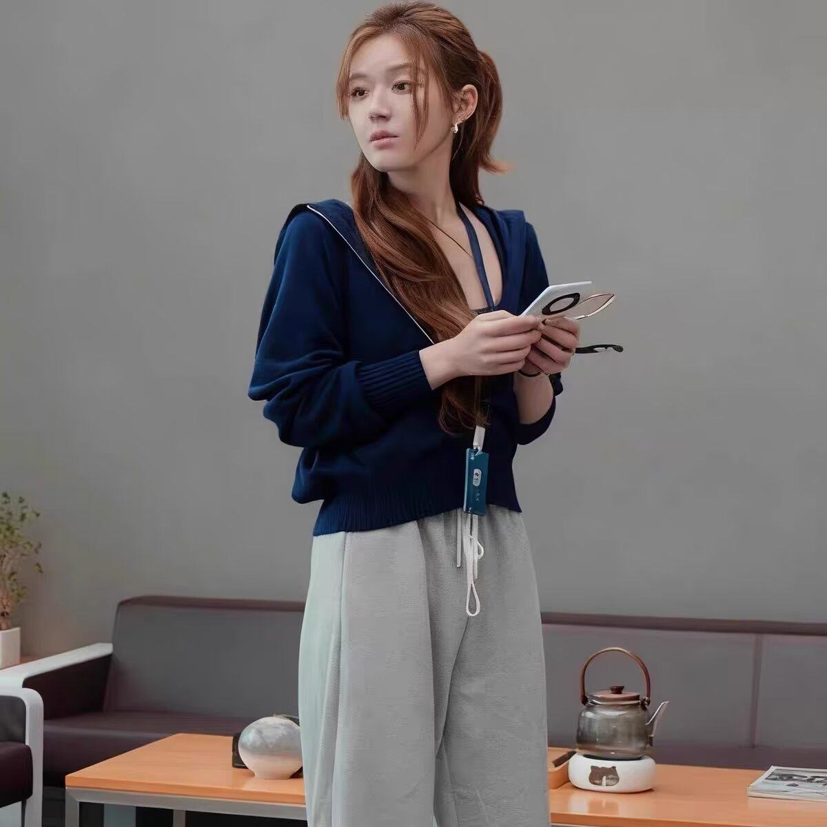 bm长袖 休闲慵懒风连帽拉链针织开衫 毛衣外套 Girl许妍同款 Brandy