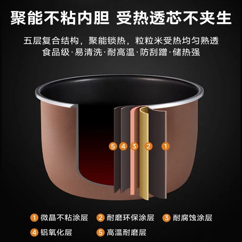 美 电饭煲5升家用智能多功能大容量电饭锅3到4人0涂层煮粥柴火饭