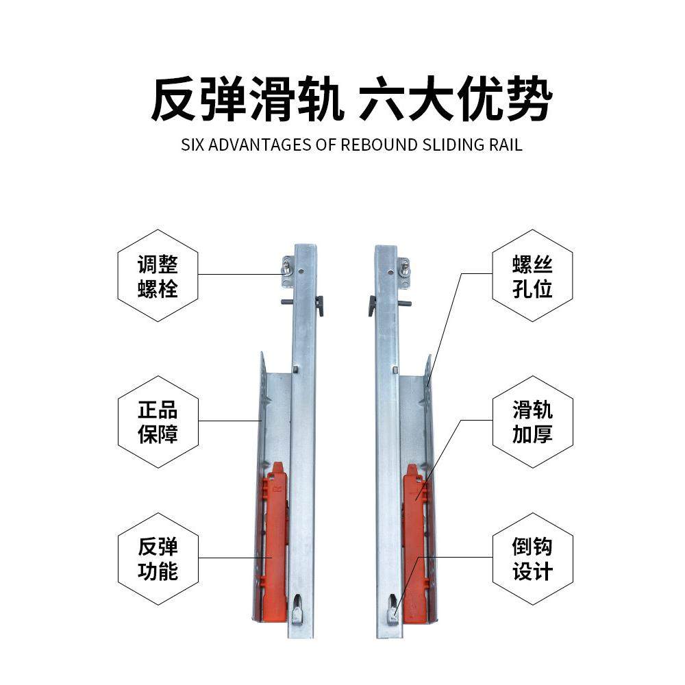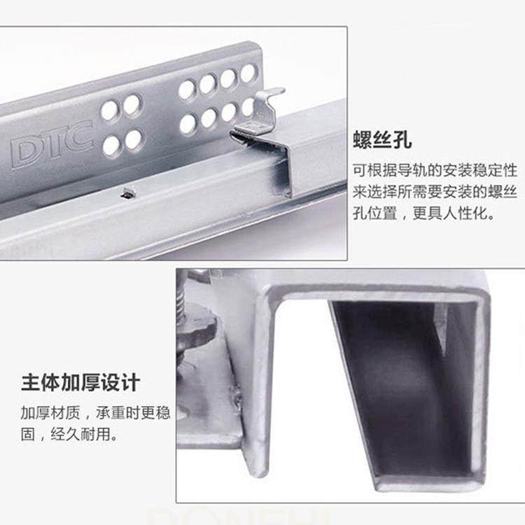不锈钢三节抽屉滑轨防锈橱柜导轨静音伸缩滑道轨道45宽加厚三折轨