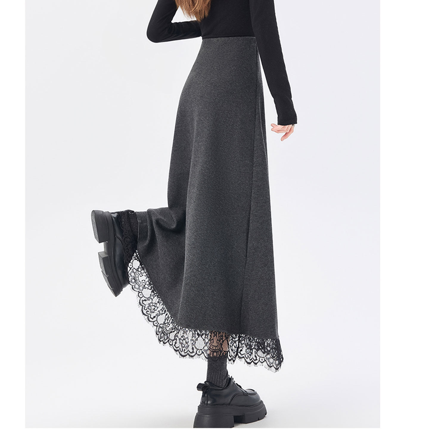 格雷系灰色毛呢中裙大码 到膝盖半身裙女胖mm显瘦小个子a字百褶裙