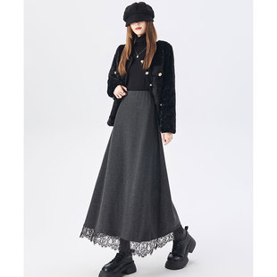 灰色毛呢半身裙女2025秋冬款 高腰显瘦A字短裙宽松小个子包臀裙子