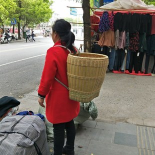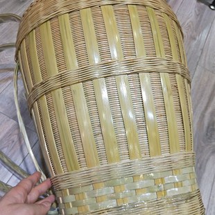 竹编带盖点心篮手提圆形编织纯手工食物篮复古家用中式 创意环保