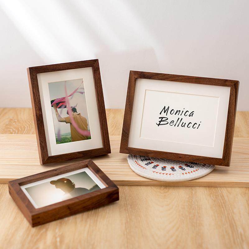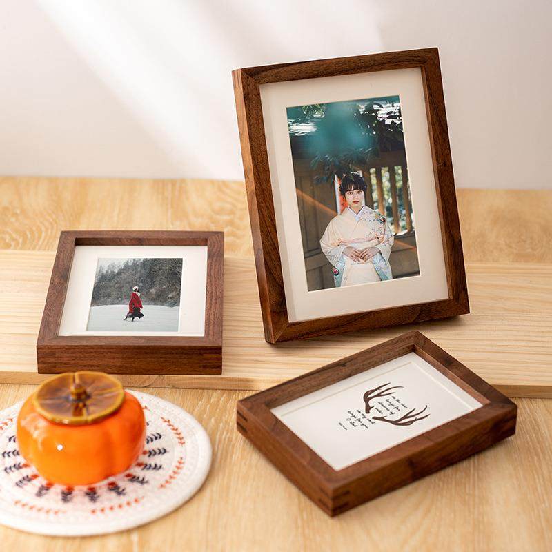 高质感榫卯相框摆台现货678寸胡桃樱桃实木立体画框装 裱照片