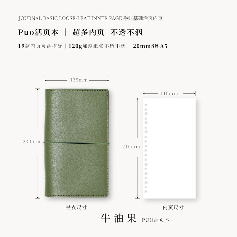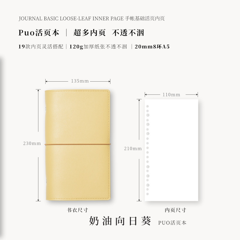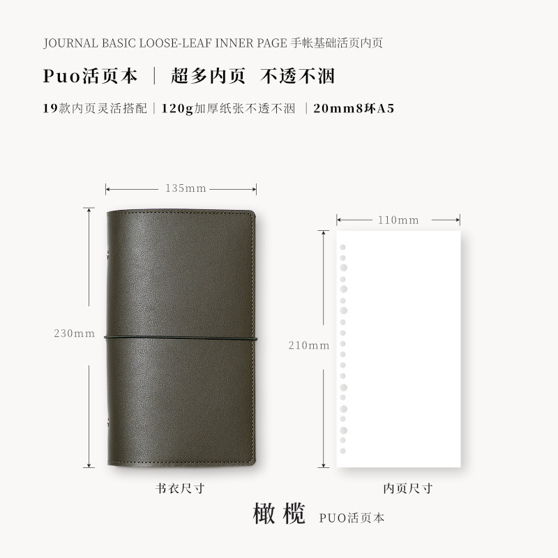 A5窄版 puo可爱小笔记本子软皮手账本便携随身记事本活页手帐本
