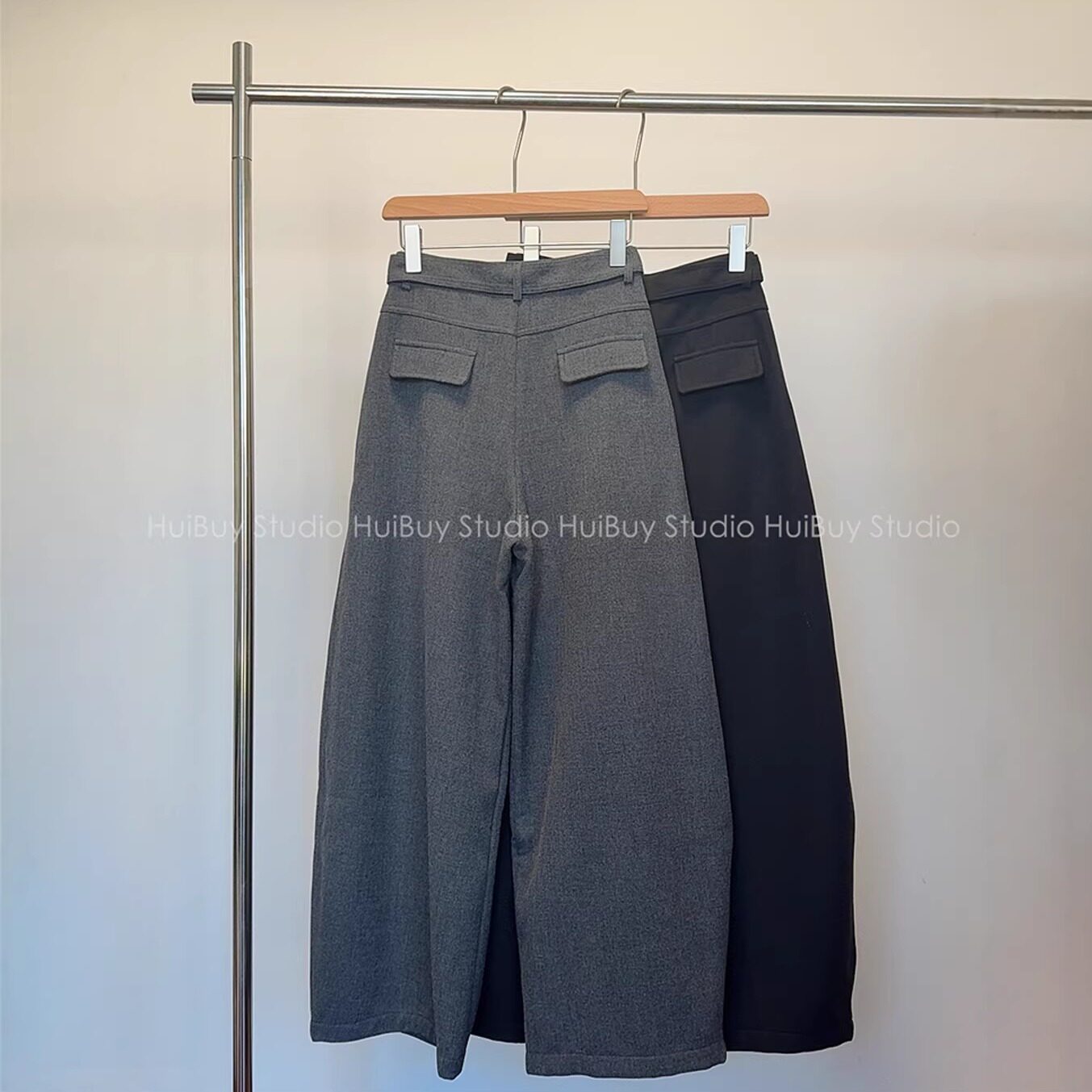 设计感腰带高克重加绒呢子裤 3D立裁垂顺弯刀裤 秋冬 会buy实拍
