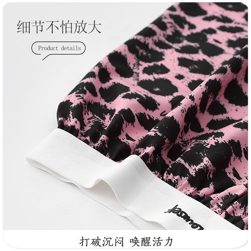 一男一女冰丝潮流豹纹抗菌透气居家休闲中腰运动阿罗裤 情侣装 短裤