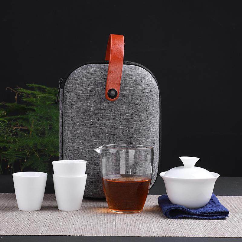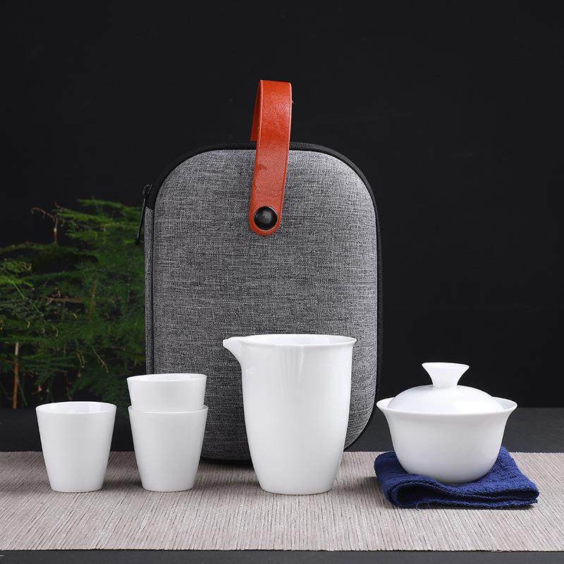 收纳包定制 泡茶壶小套装 新款 羊脂玉瓷白瓷功夫旅行茶具户外便携式