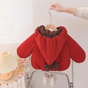 英国NEXT 加厚连帽羽绒棉服女童新年衣服 SKK女宝宝拜年服外套冬季