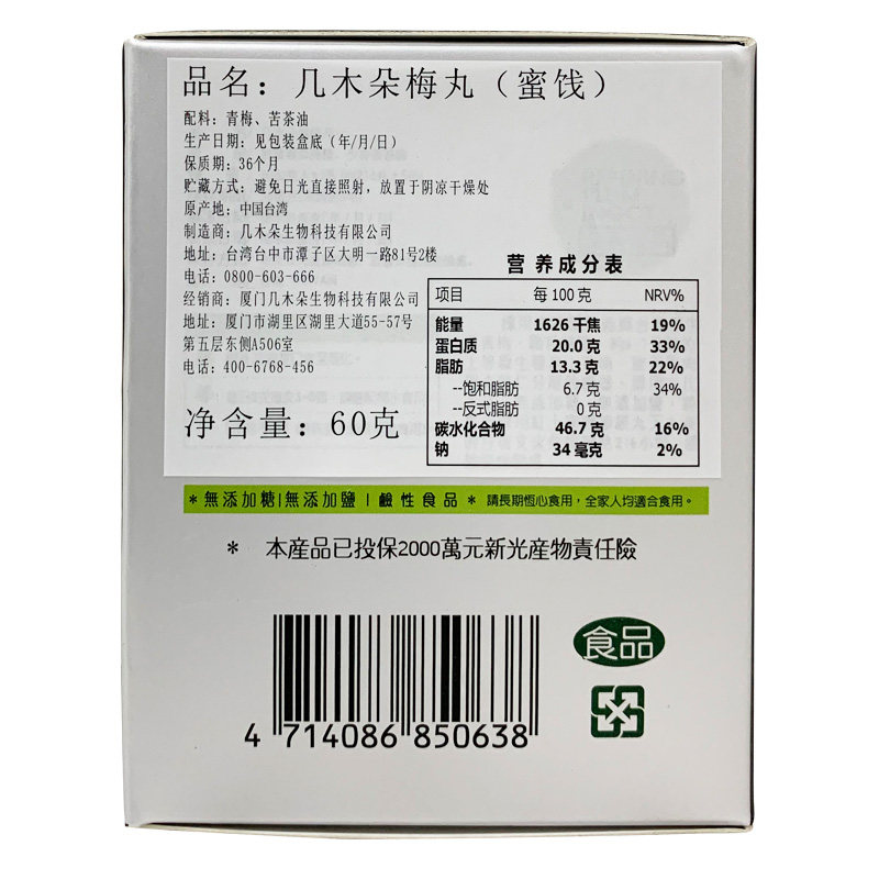 中国台湾几木朵炼梅丹青梅丸浓缩梅子精青梅精梅丹强碱性食品60g