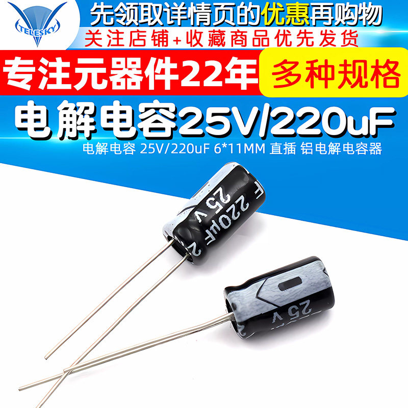 100 2200uF 1000 470 220 50V 25v 件10 直插铝电解电容器元