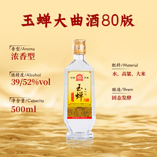 浓香型白酒光瓶39 玉蝉老酒玉蝉大曲酒80版 52度500ml 新客品鉴