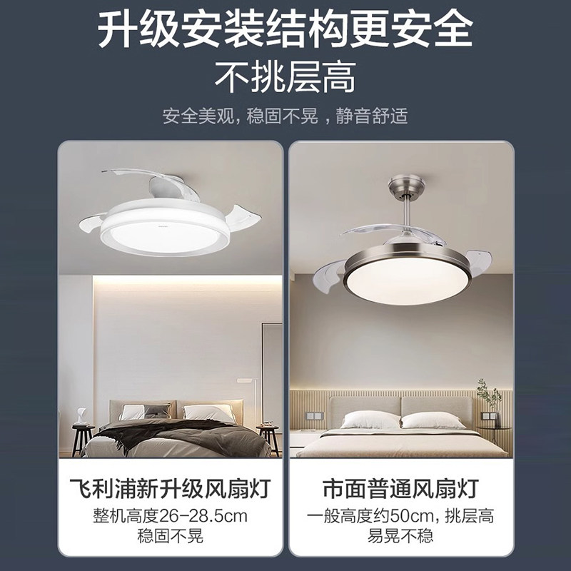 飞利浦全光谱吸顶吊灯风扇一体护眼卧室餐厅客厅无叶隐形2025新款
