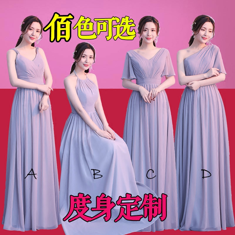 姊妹团姐妹裙伴娘裙姊妹裙伴娘礼服订造简显瘦灰bridesmaid dress