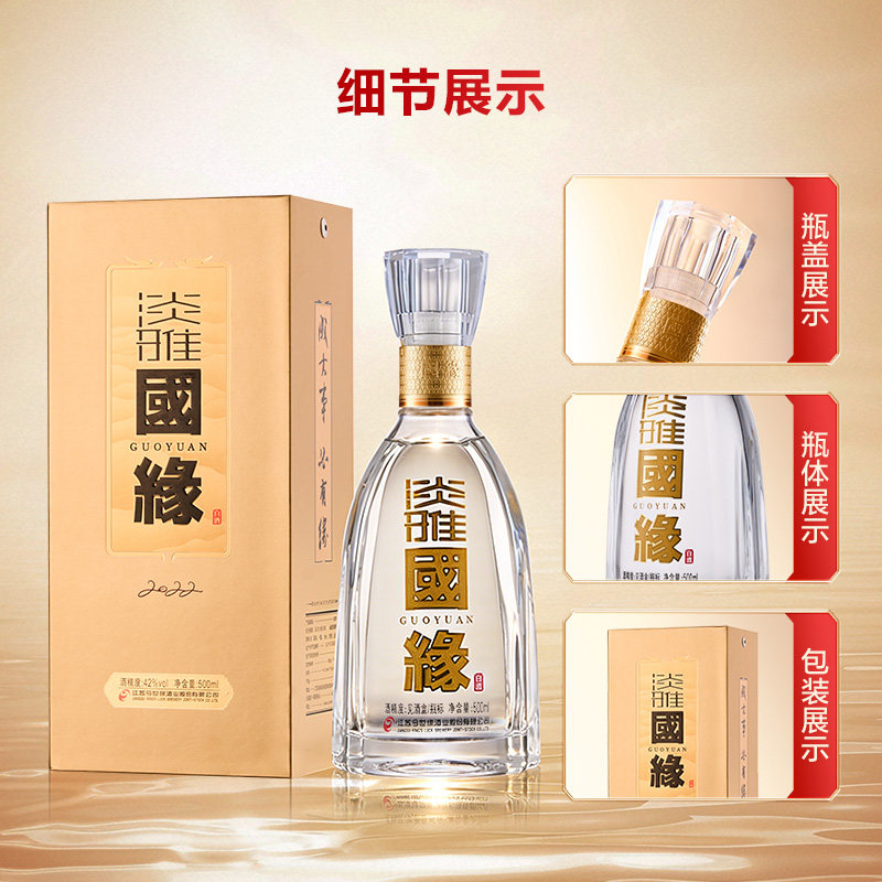今世缘42度淡雅国缘500ml 宴请送礼 6瓶纯粮浓香型白酒整箱装