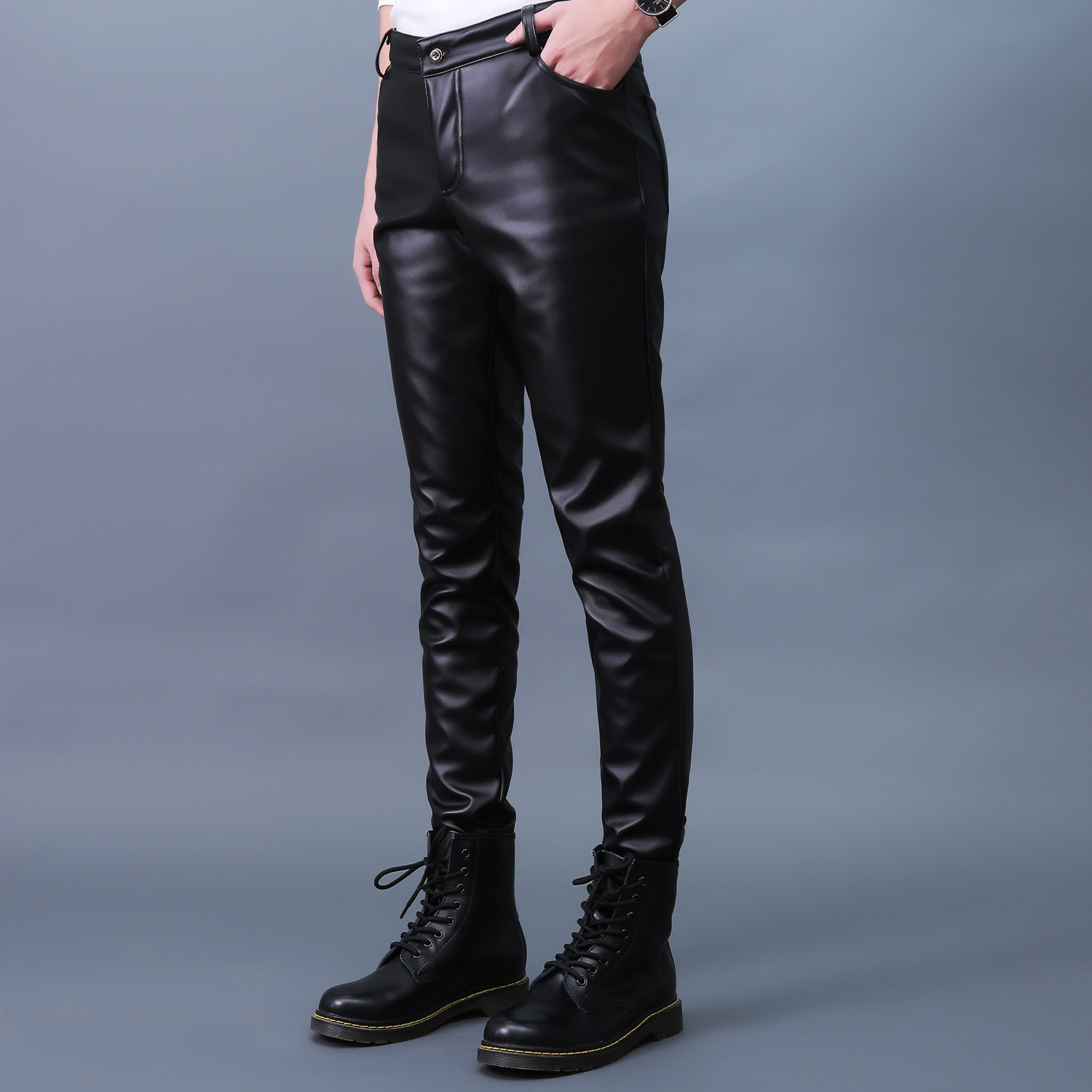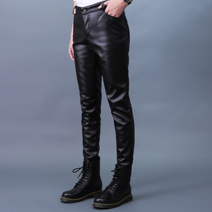 修身 加绒韩版 皮裤 紧身机车防水防风皮裤 秋冬季 夏无绒薄款 弹力男式