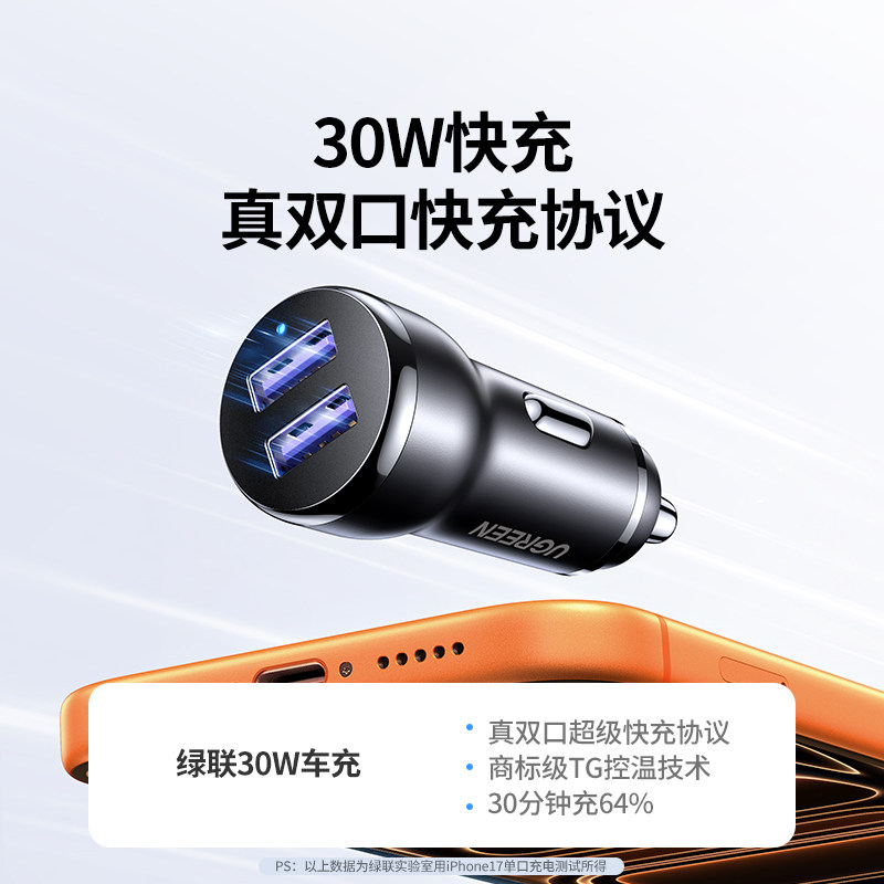 车载充电器手机超级快充点烟器转换插头一拖二车充usb汽车多功能
