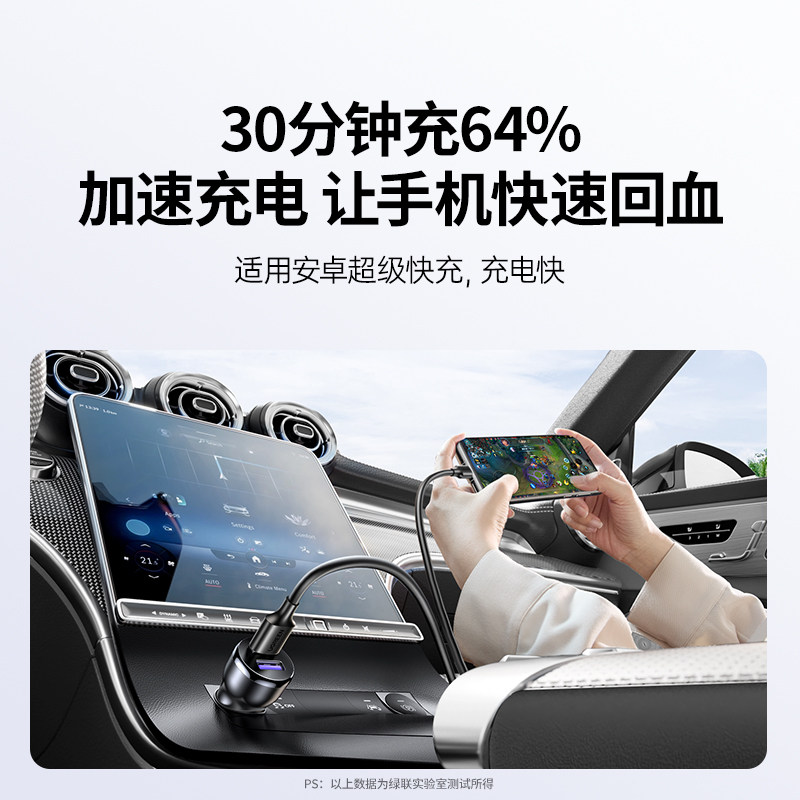 车载充电器伸缩线超级快充2025新款 一拖二点烟器120w适用华为小米