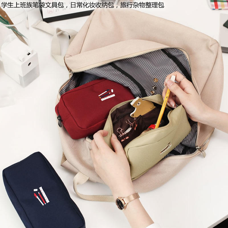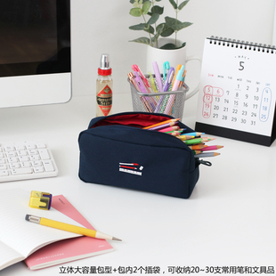 韩国进口2nul简约纯色立体大容量学生笔袋办公文具收纳包化妆包