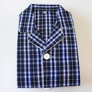 纯棉老粗布睡衣男士 全棉格子家居服衣裤 长袖 春秋款 2件套 套装 特价