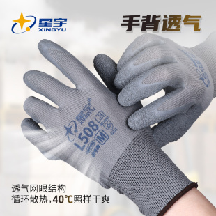 星宇乳胶L508防滑劳保手套耐磨冬季 保暖防护工地工作劳动加厚半挂