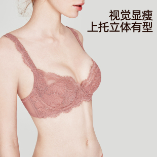 好奇蜜斯大胸显小胸内衣女性感夏薄防下垂法式 纯欲蕾丝文胸罩套装