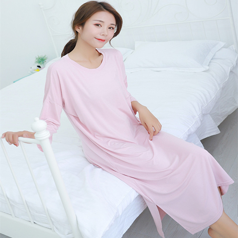 带胸垫纯棉哺乳产后睡裙待产裙 春秋季 芬腾可安长款 月子服睡衣女款