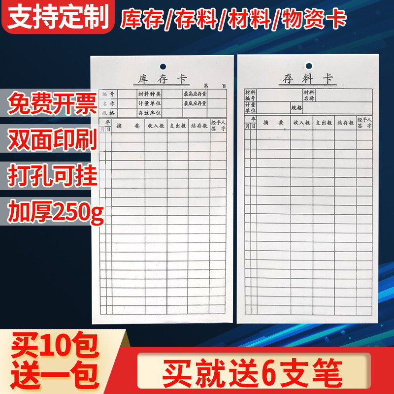 双面打孔存料卡仓库货位卡库存卡材料卡物料标识卡物资收发卡定制