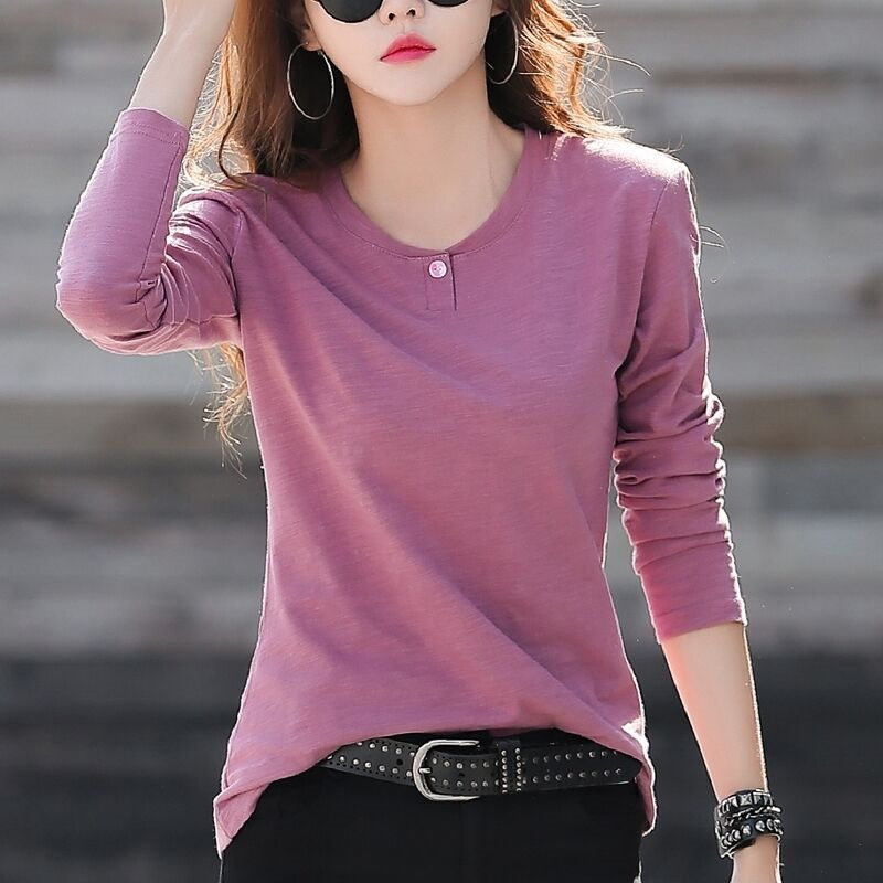 大码 女装 韩版 长袖 内搭打底衫 新款 宽松上衣春秋冬季 t恤女2025秋季