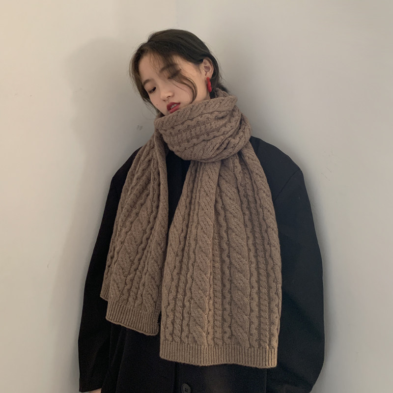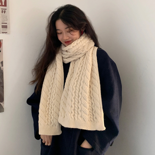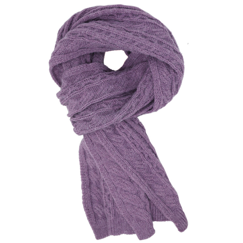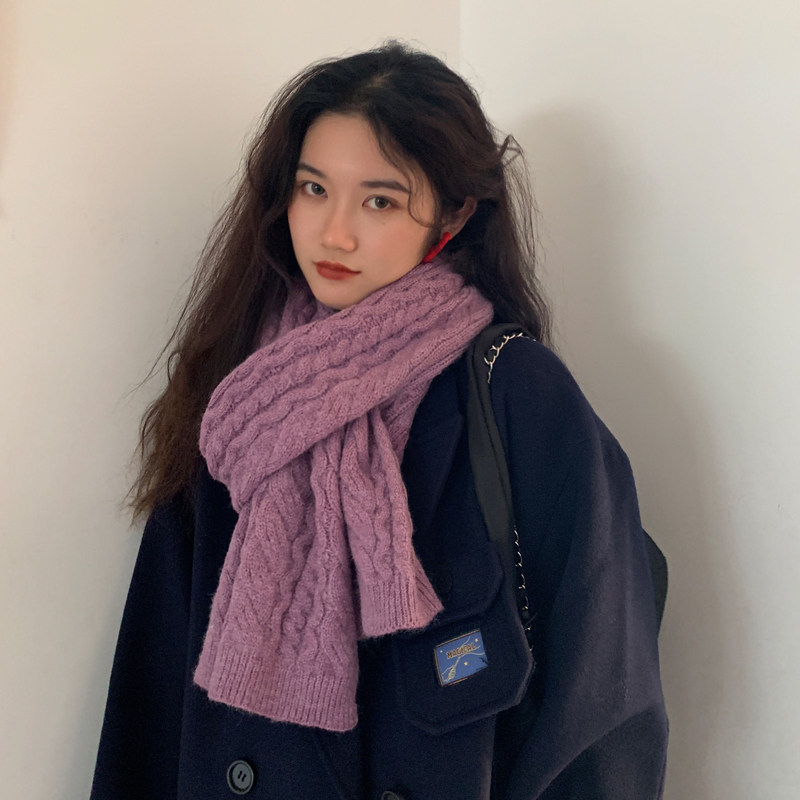纯色针织毛线学生保暖围脖情侣 长款 加厚紫色ins韩版 围巾女士冬季