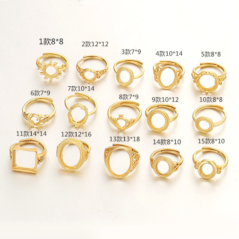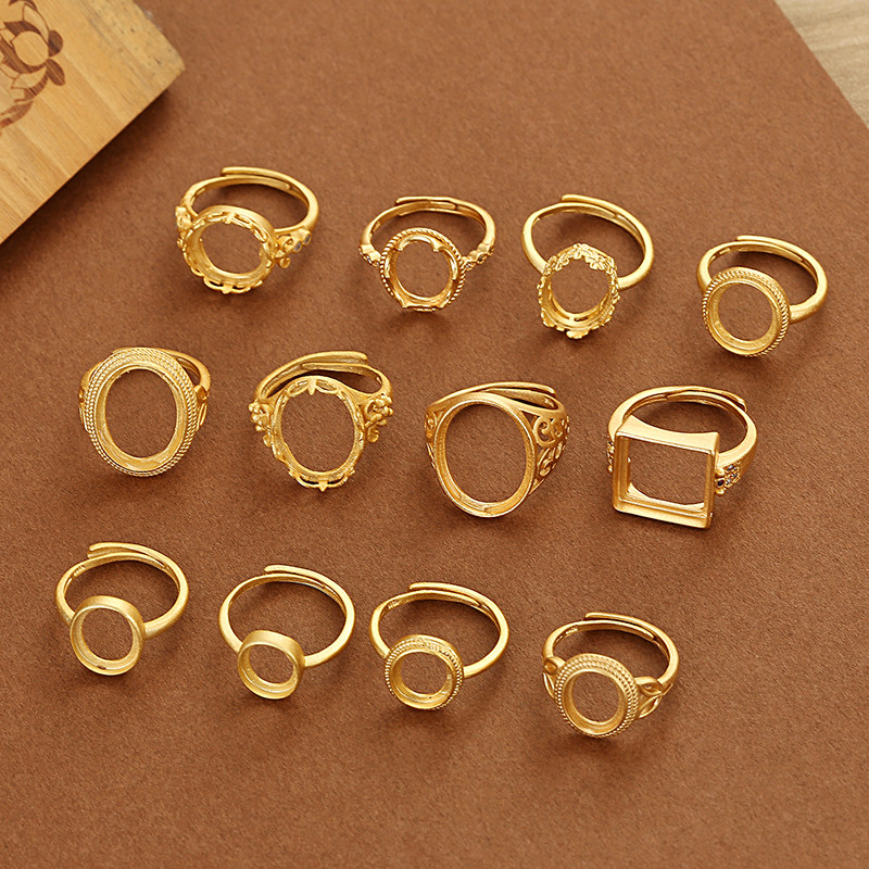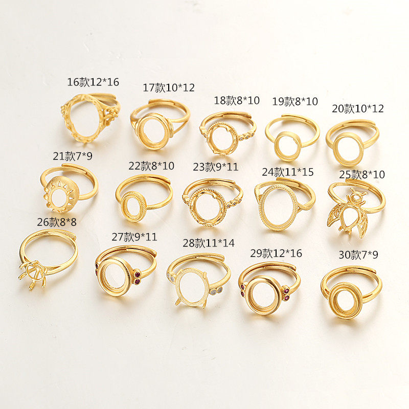 古法金925镀银戒指空托女椭圆形镶蜜蜡戒托绿松石沙金活口戒指托