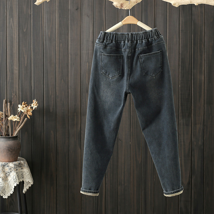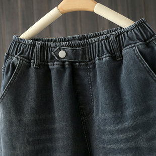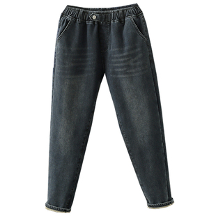 加绒长裤 秋冬牛仔裤 胖mm宽松显瘦哈伦高腰老爹裤 200斤女裤 潮 大码