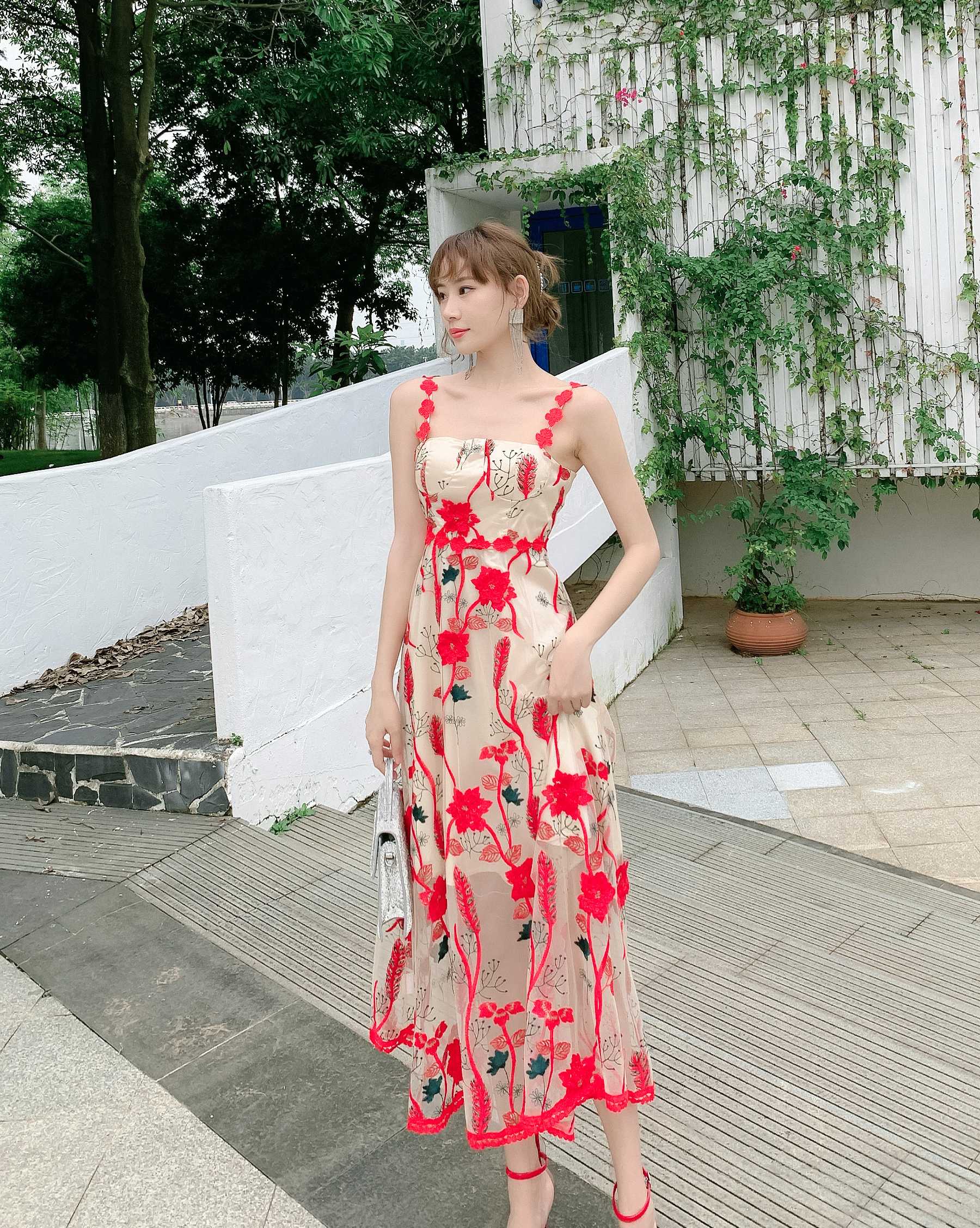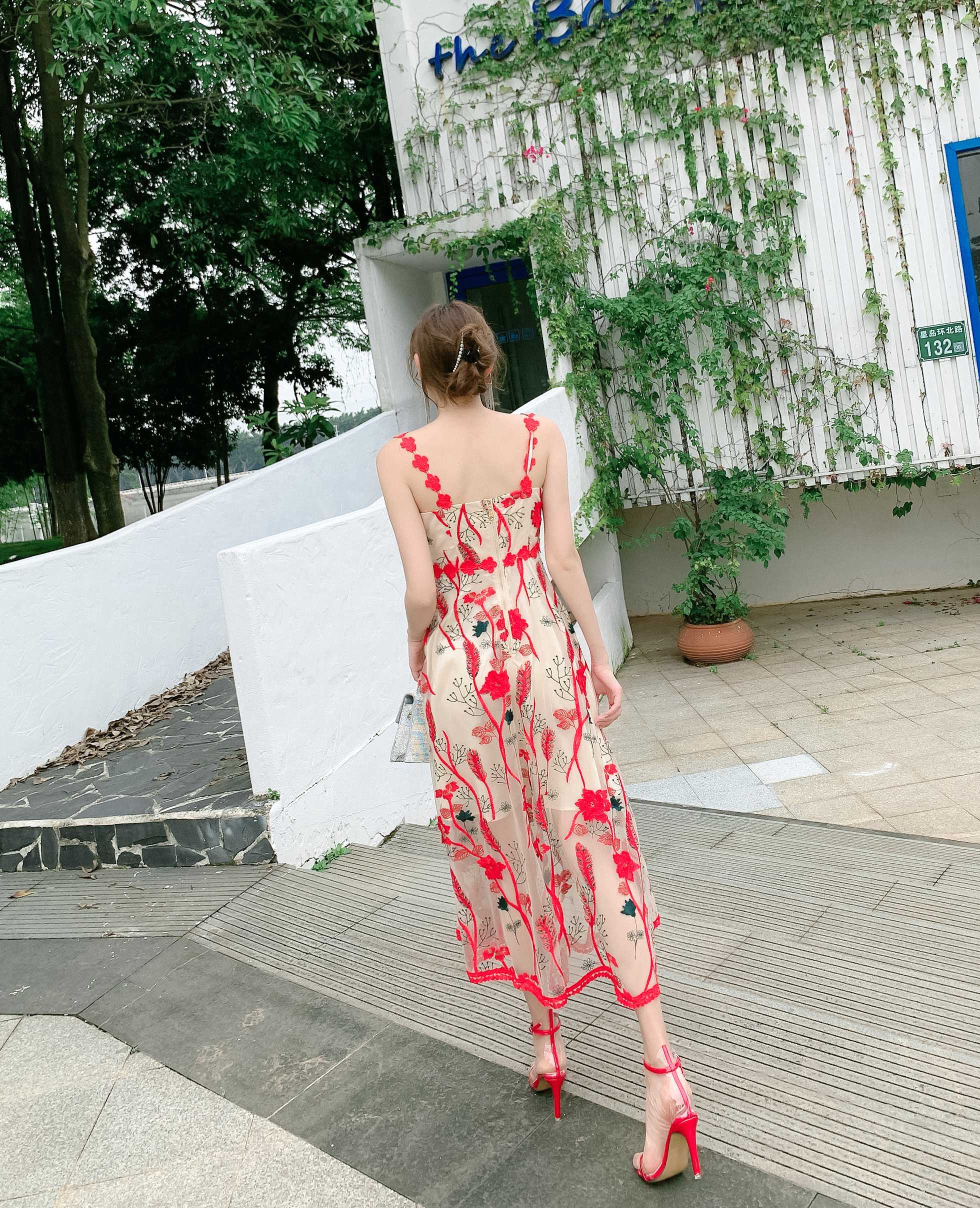 吊带蕾丝连衣裙长裙 复古重工刺绣名媛修身 2020夏装 新款