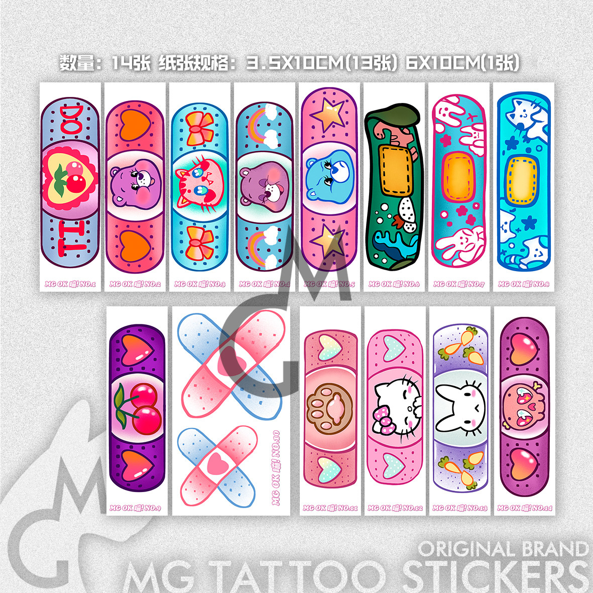 14张趣味创意修饰疤痕可爱软萌OK蹦卡通图案纹身贴纸潮 tattoo