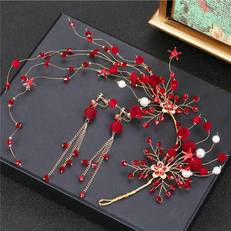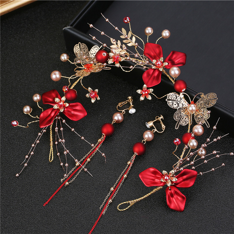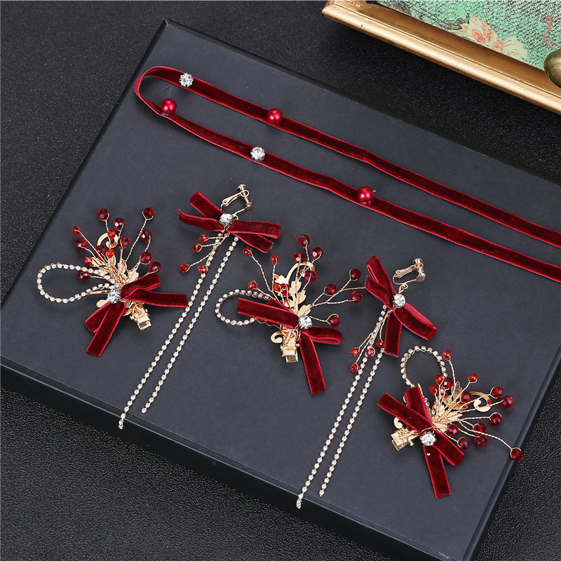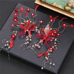 红色新娘敬酒服头饰2020新款 森系超仙结婚红色婚纱礼服发饰配饰品