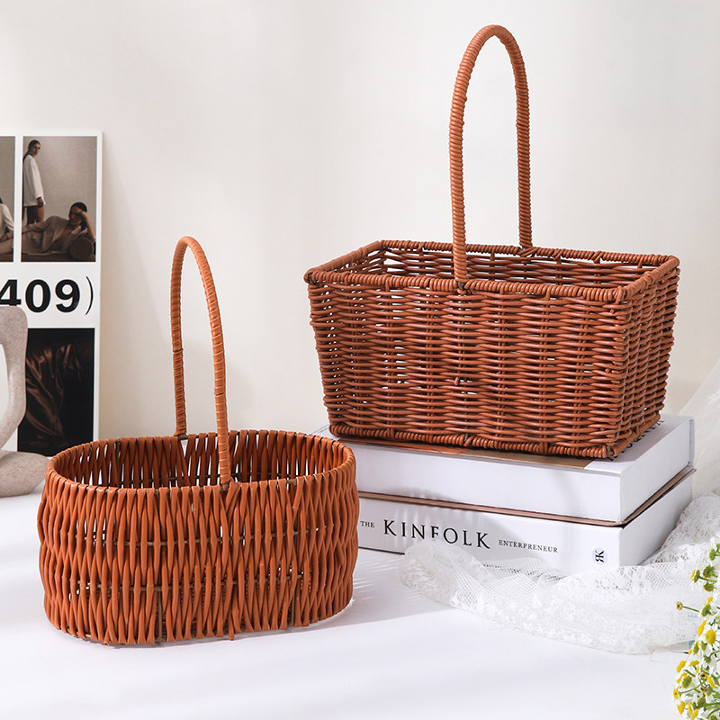 塑藤手提篮篮子插花仿藤编织花篮伴手礼品篮手提包水果鸡蛋果篮