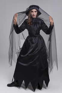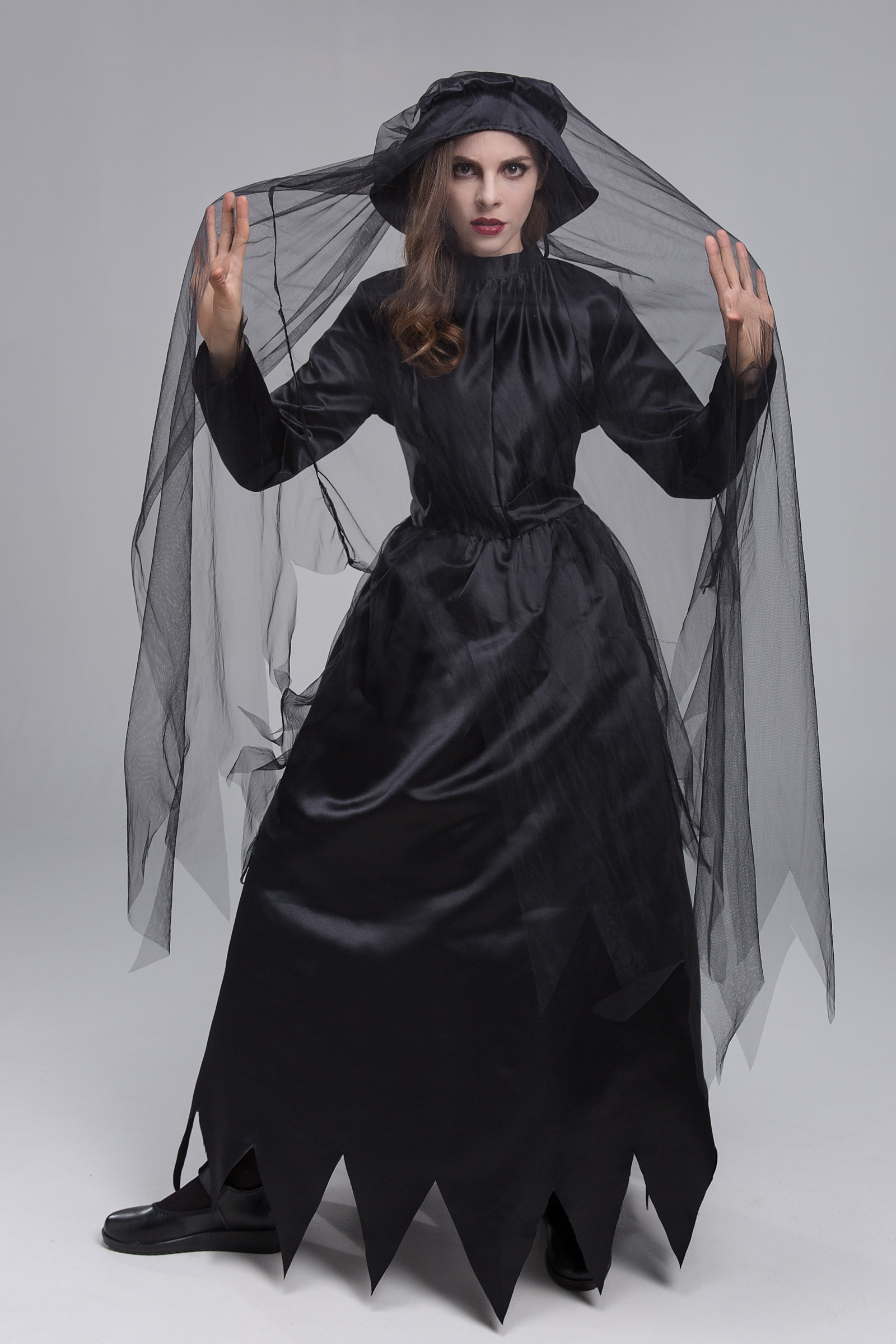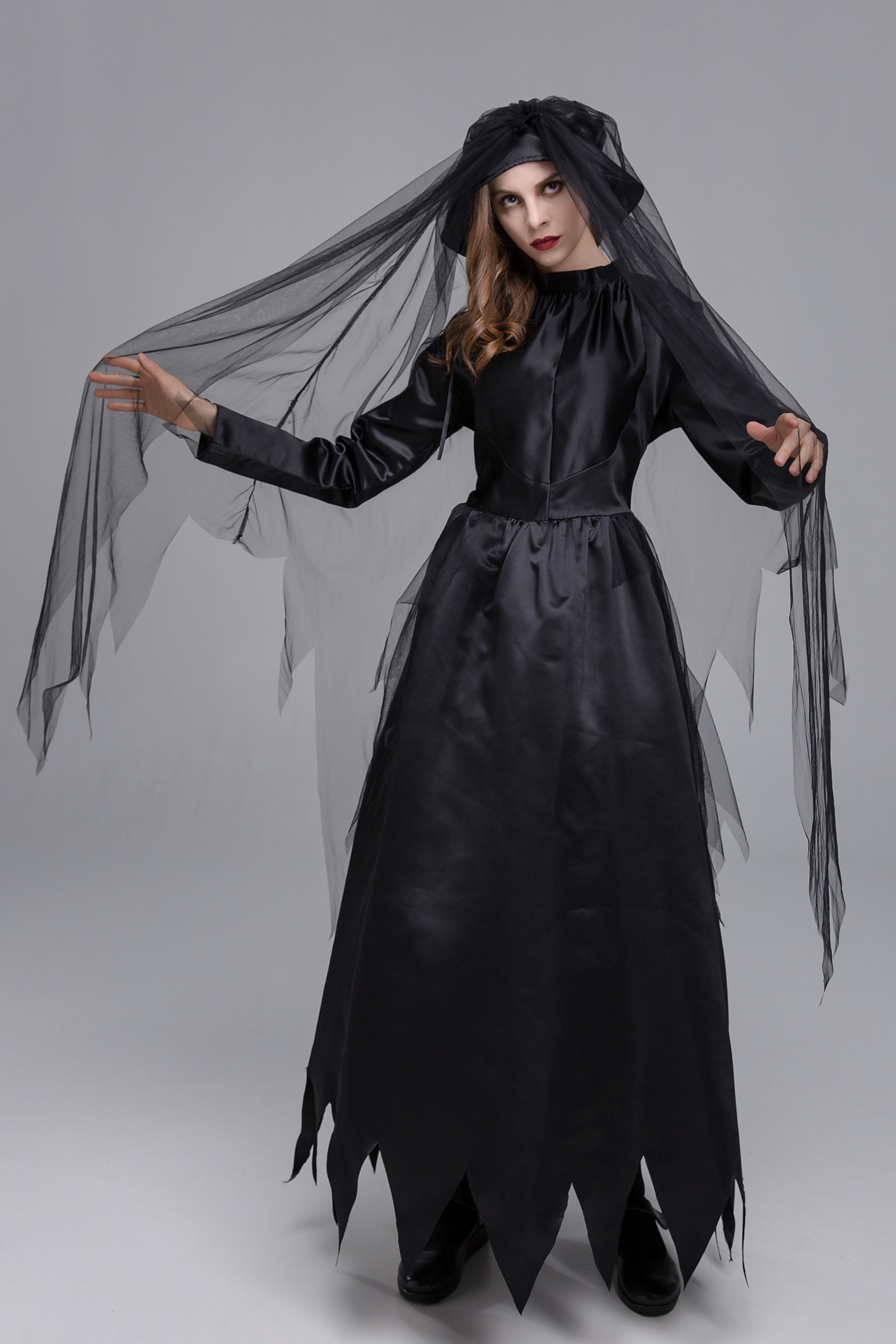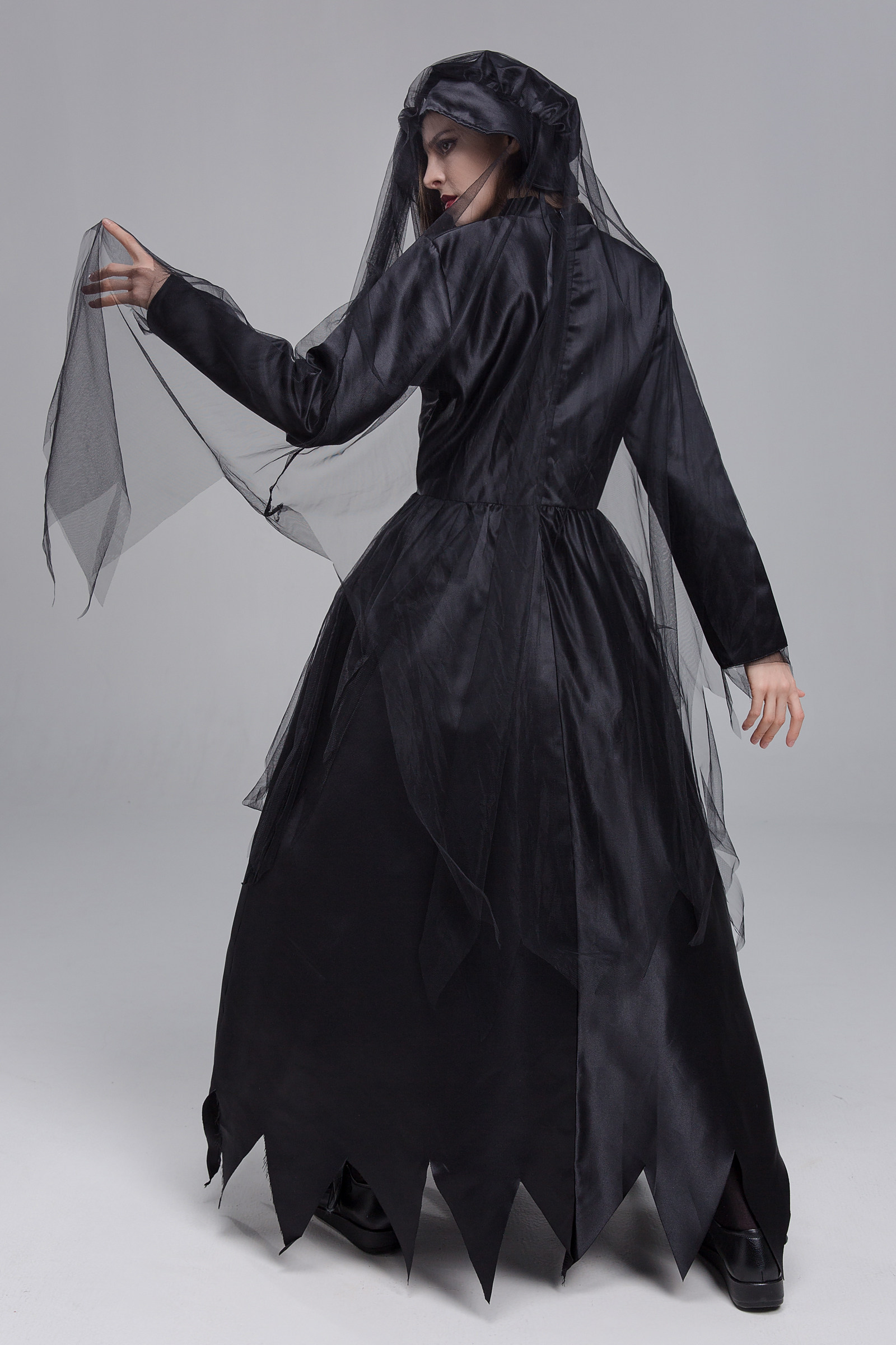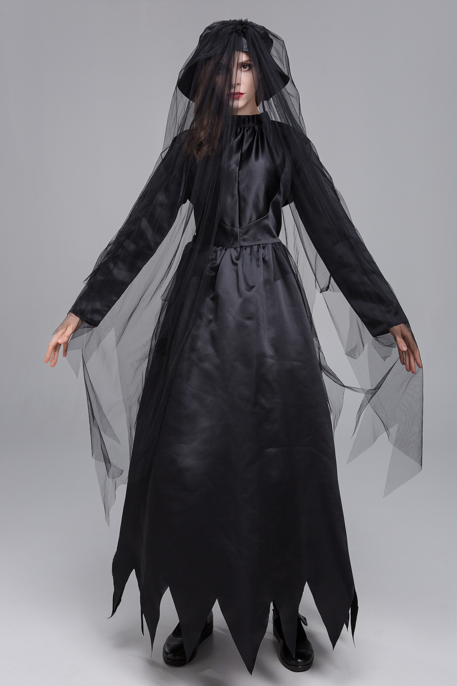2020实拍万圣节恐怖鬼新娘丧尸服装 酒吧吸血鬼演出服黑纱披风大码