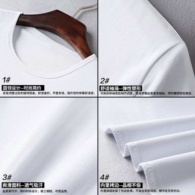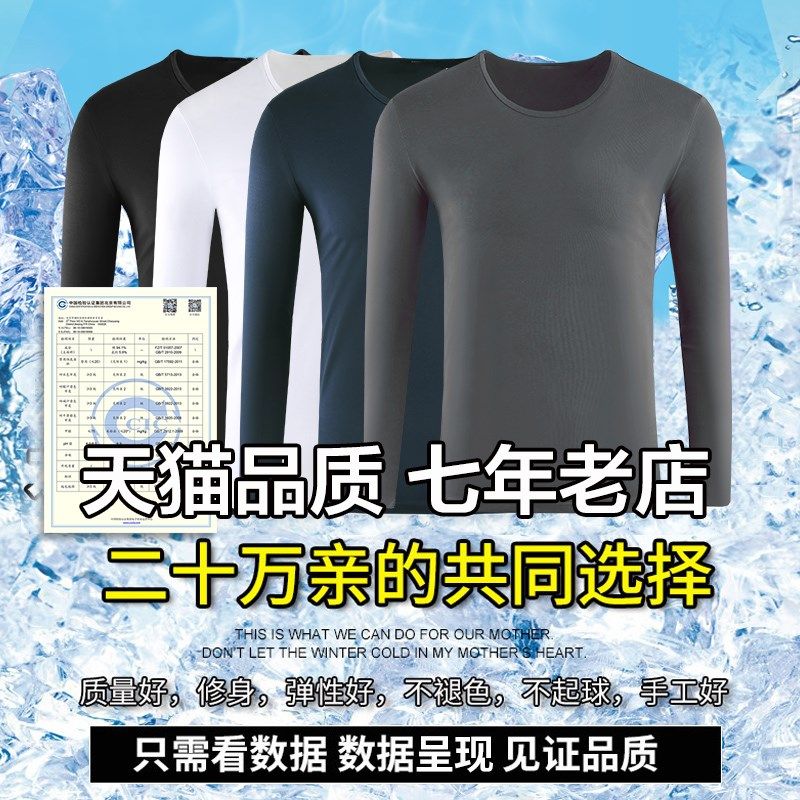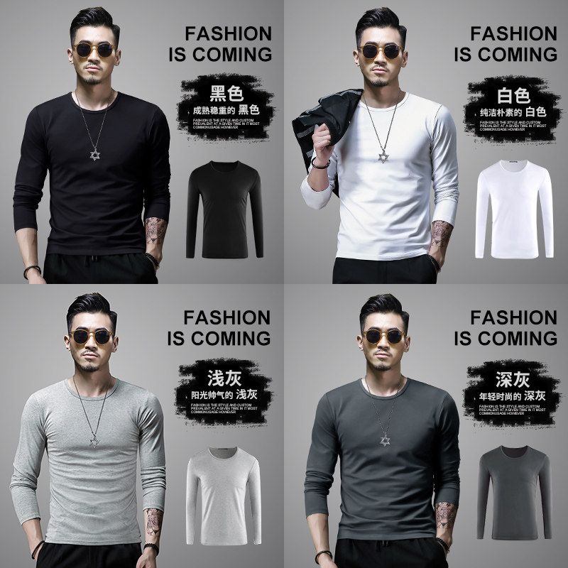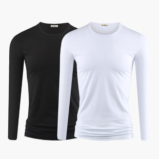 莫代尔棉长袖 打底衫 T恤男装 纯色白圆领潮流大码 上衣服男 秋季 2件