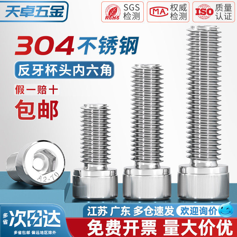304不锈钢反牙内六角螺丝钉反扣左旋左牙螺栓M3M4M5M6M8M10M14M16
