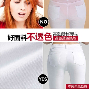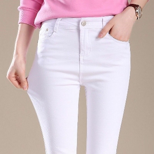 女春秋装 显瘦休闲小脚铅笔长裤 新款 女士修身 韩版 白色纯色棉牛仔裤