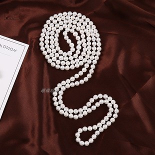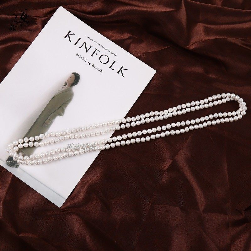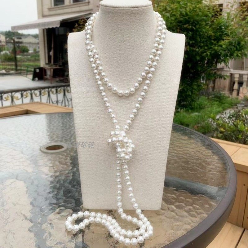 百搭款 多戴经典 女 项链毛衣链多层一款 深海母贝仿珍珠正圆强光长款