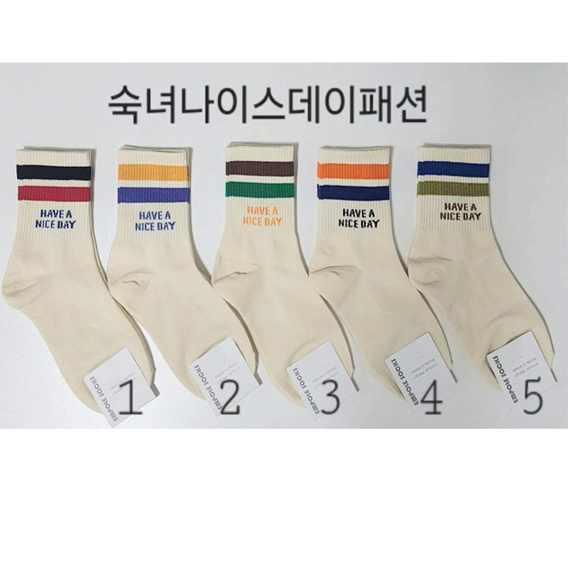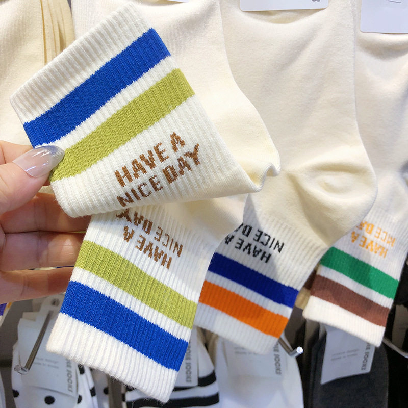 5双袜子男女纯棉防臭中筒袜情侣刺绣学生百搭ins高帮运动长筒袜潮