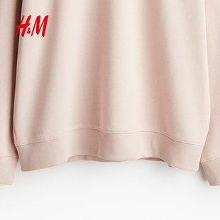 上衣0889828 miu系简约加绒复古圆领慵懒风宽松美式 HM女装 卫衣冬季