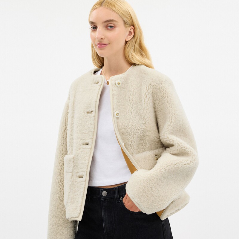 蔻驰女士羊毛皮开衫 COACH 夹克上衣外套舒适休闲高级感 新品