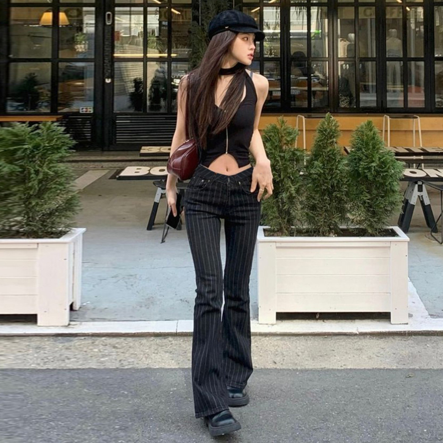 微喇显瘦长裤 WEEKEEP 女百搭辣妹修身 休闲基础条纹低腰牛仔裤 美式