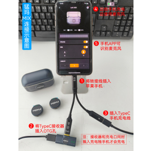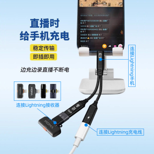 MIX专用边充电边直播苹果手机一分二转接线无线领夹麦克风二合一转换器连接线 猛玛A1 Ktele