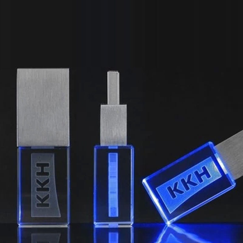 8玻璃礼品激光内雕定制logo音乐发光 水晶长方64Gu盘 金属32