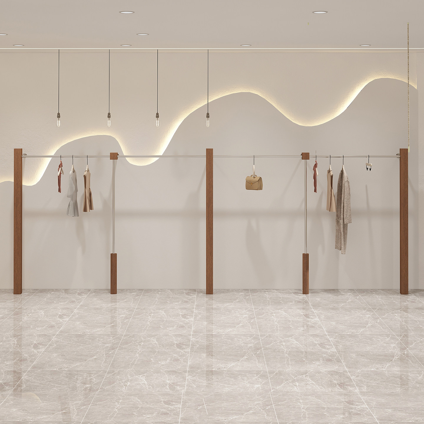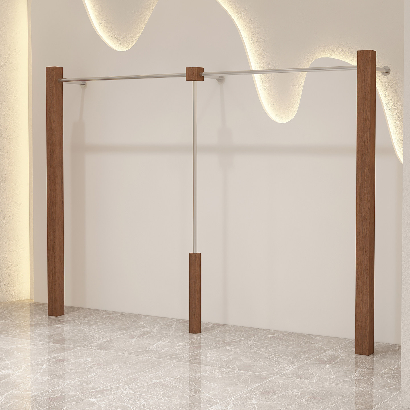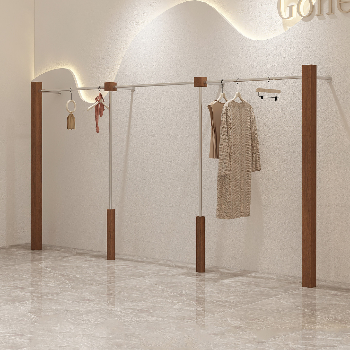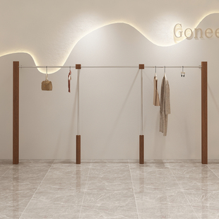 不锈钢陈列架 店货架落地挂衣架仿胡桃色童装 服装 店展示架上墙女装