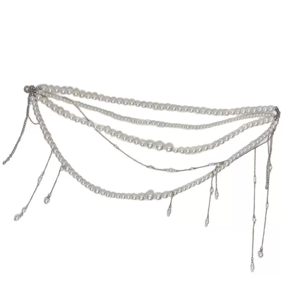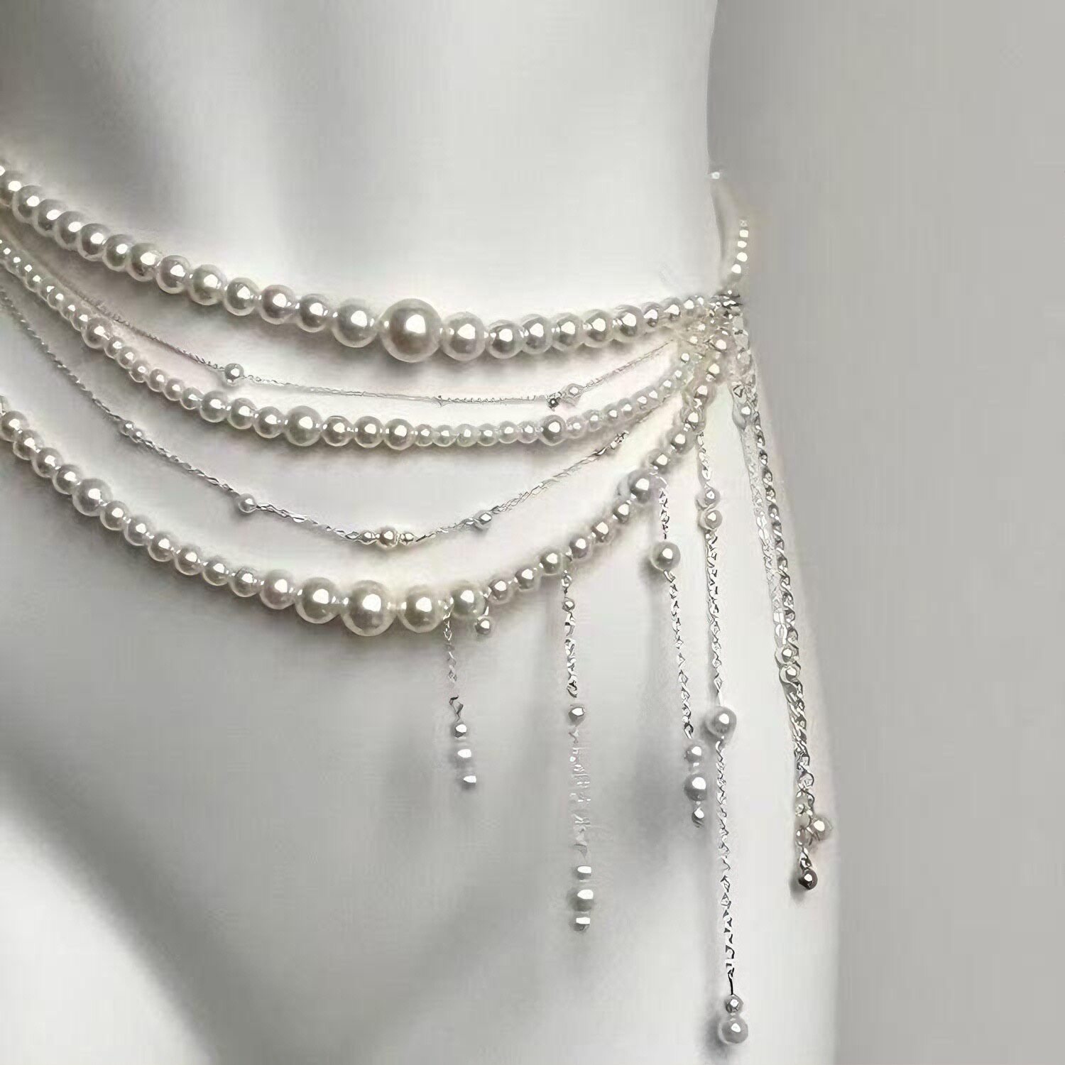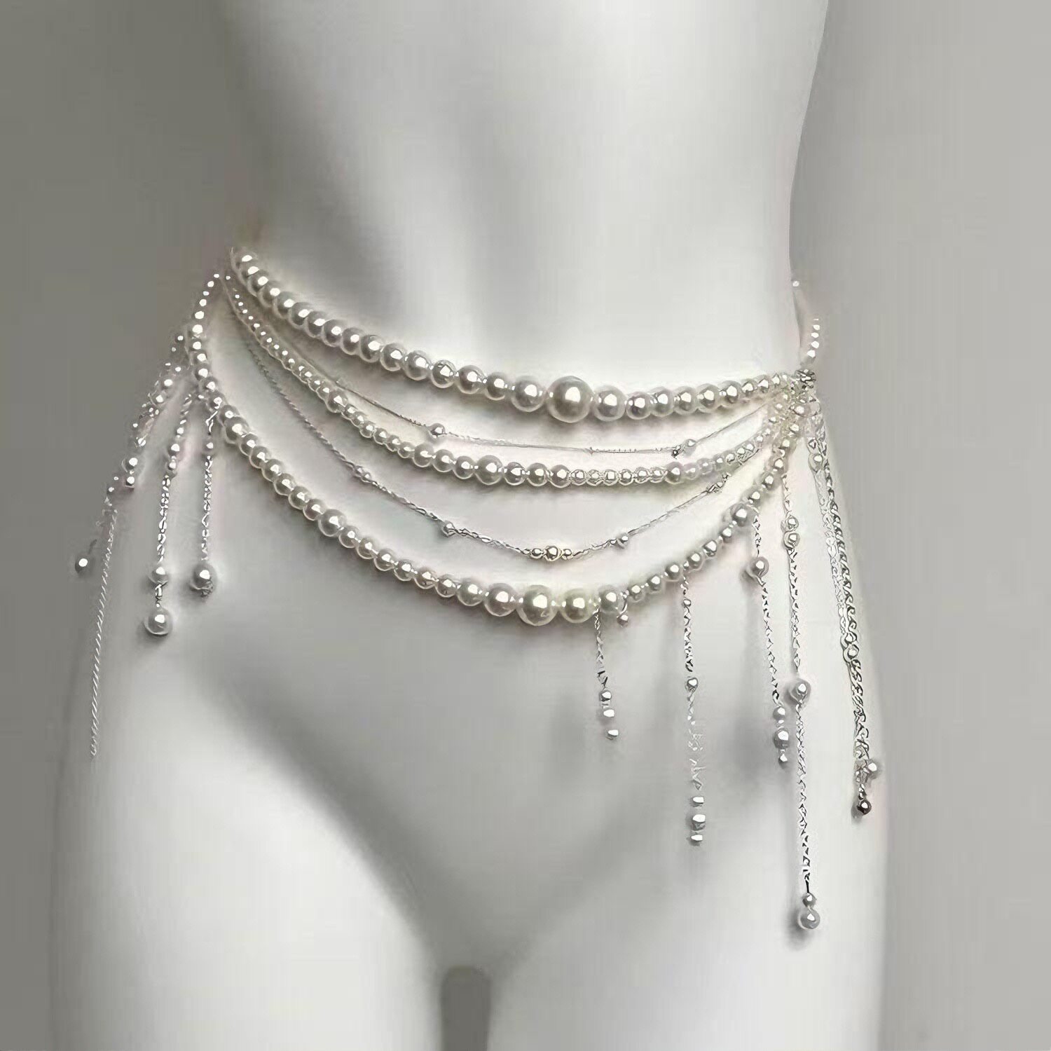仙气珍珠多层流苏腰链串珠小众高级身体链轻奢精致腰带配饰洛丽塔