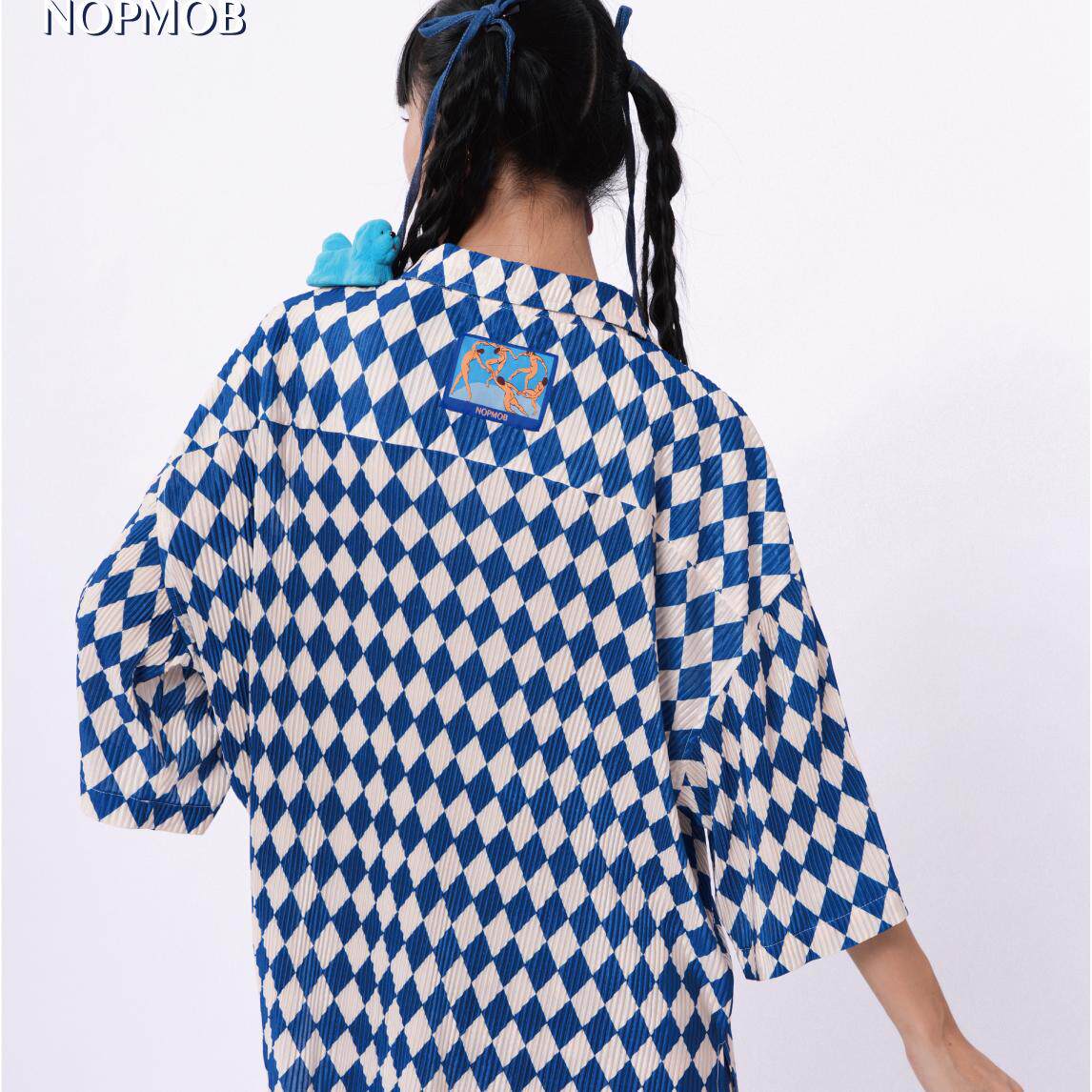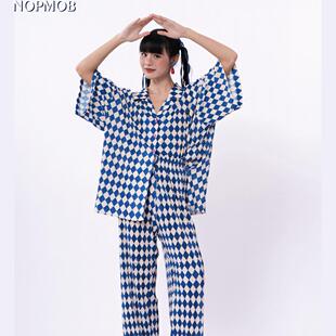 套装 衬衫 女 宽松慵懒显瘦短袖 NOPMOB蓝白棋盘格原创设计感褶皱大码