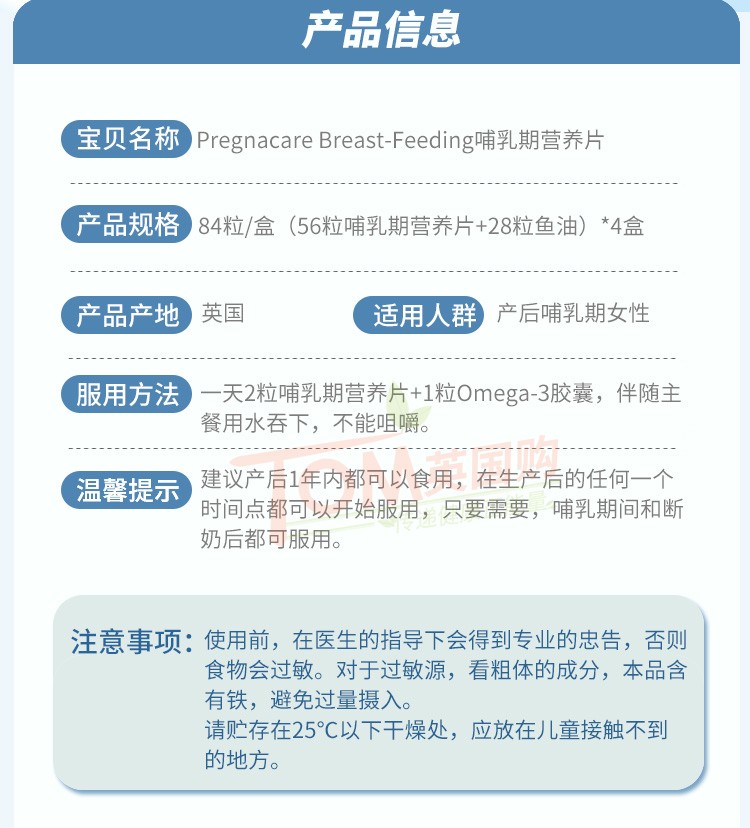 4盒27年3月英国pregnacare哺乳期孕妇产后多维生素补钙dha鱼油